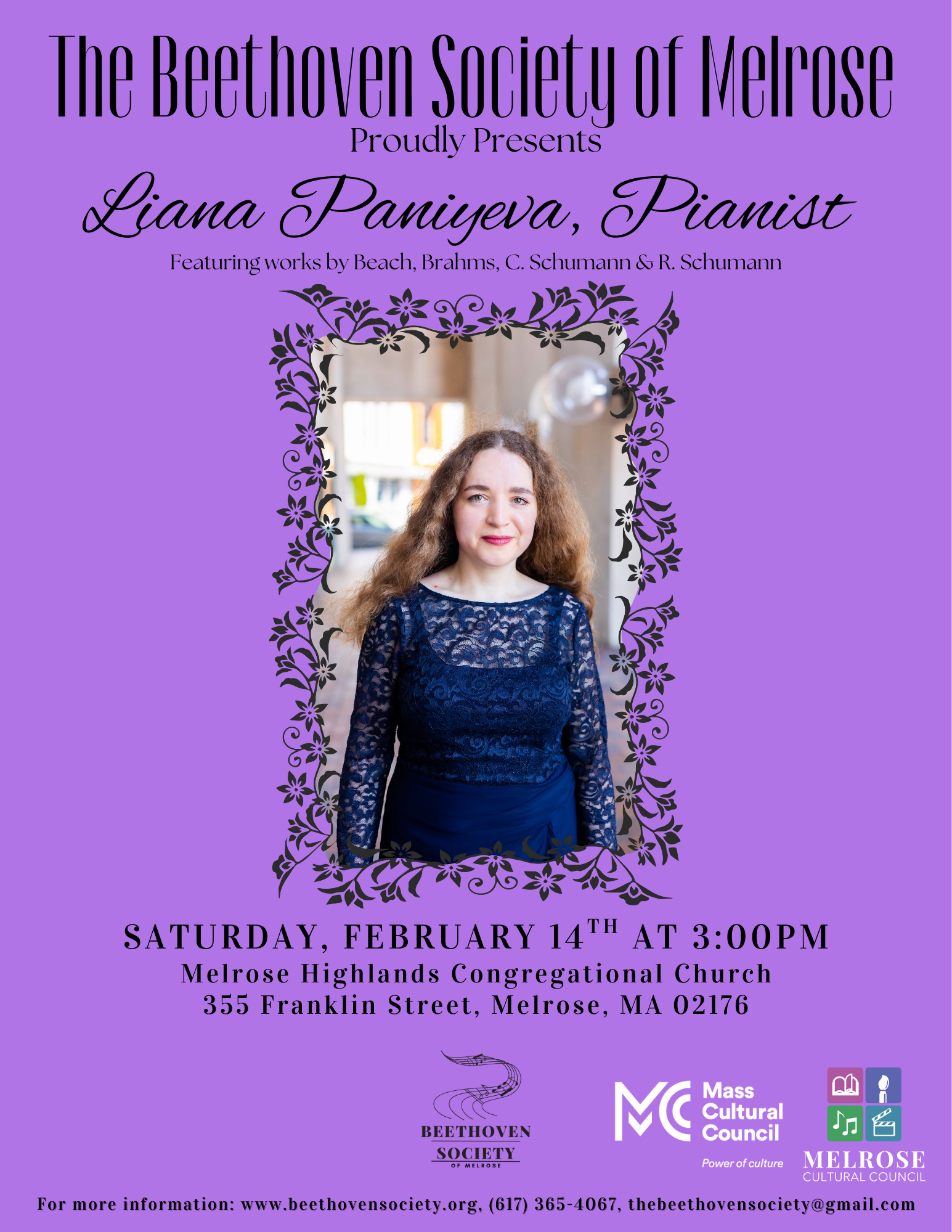 Celebrate an extraordinary artist and experience the pianism of Liana Paniyeva, a performer praised for her “captivating inwardness” and poetic depth. Internationally acclaimed and heard on stages from Carnegie Hall to major festivals worldwide, Paniyeva brings rare intensity, elegance, and brilliance to every performance. Her interpretations—hailed by Fanfare Magazine as surpassing even famous names—promise an evening of profound musical storytelling. Join us for a recital that unites virtuosity and soul, where every note is shaped with insight and passion. Don’t miss the chance to hear this compelling pianistic voices live.