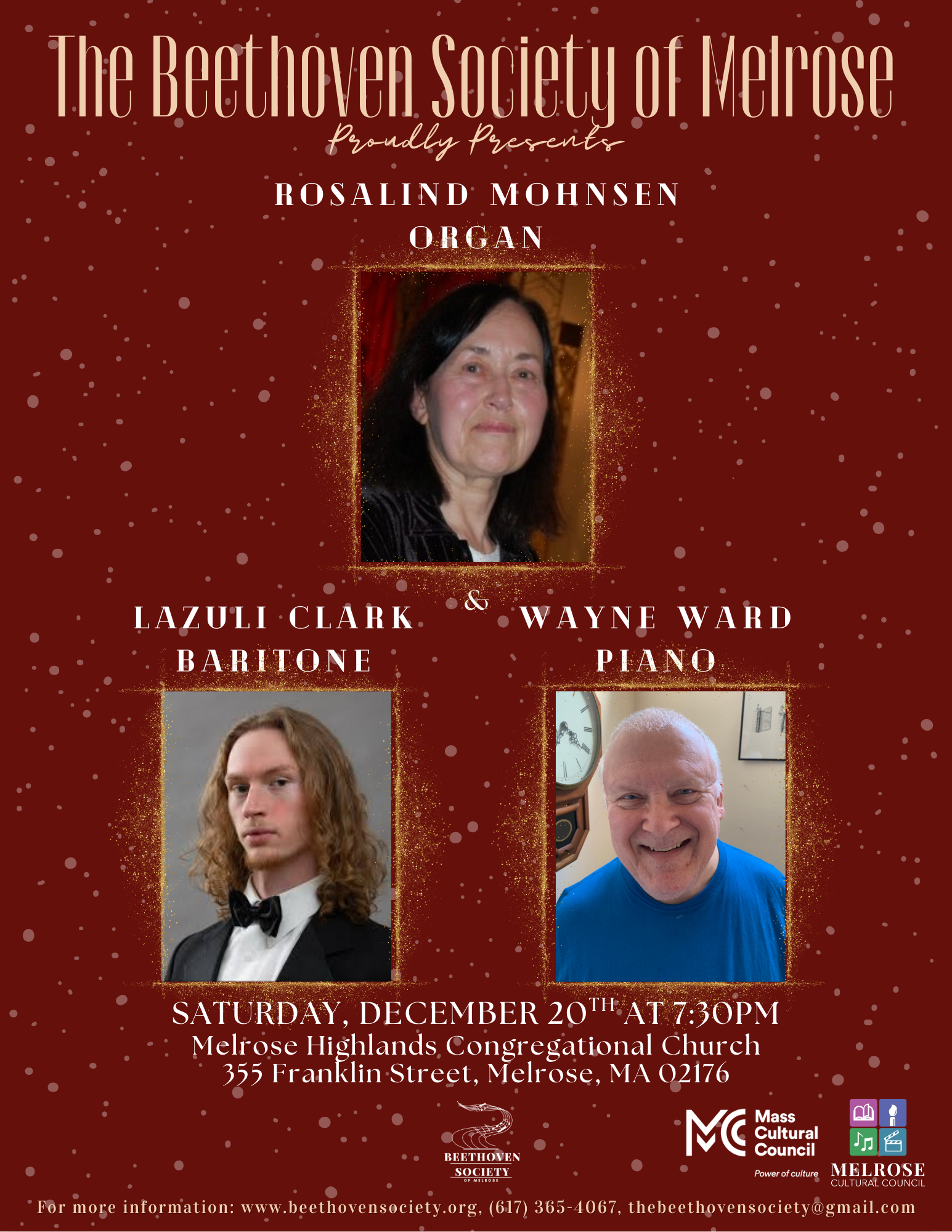 They will fill the hall with rich winter hues—deep, resonant bass lines, shimmering organ colors, and piano artistry that dances between warmth and brilliance. Expect a program that glides from timeless classics to spirited seasonal gems with pieces you have never heard, all wrapped in a festive glow.